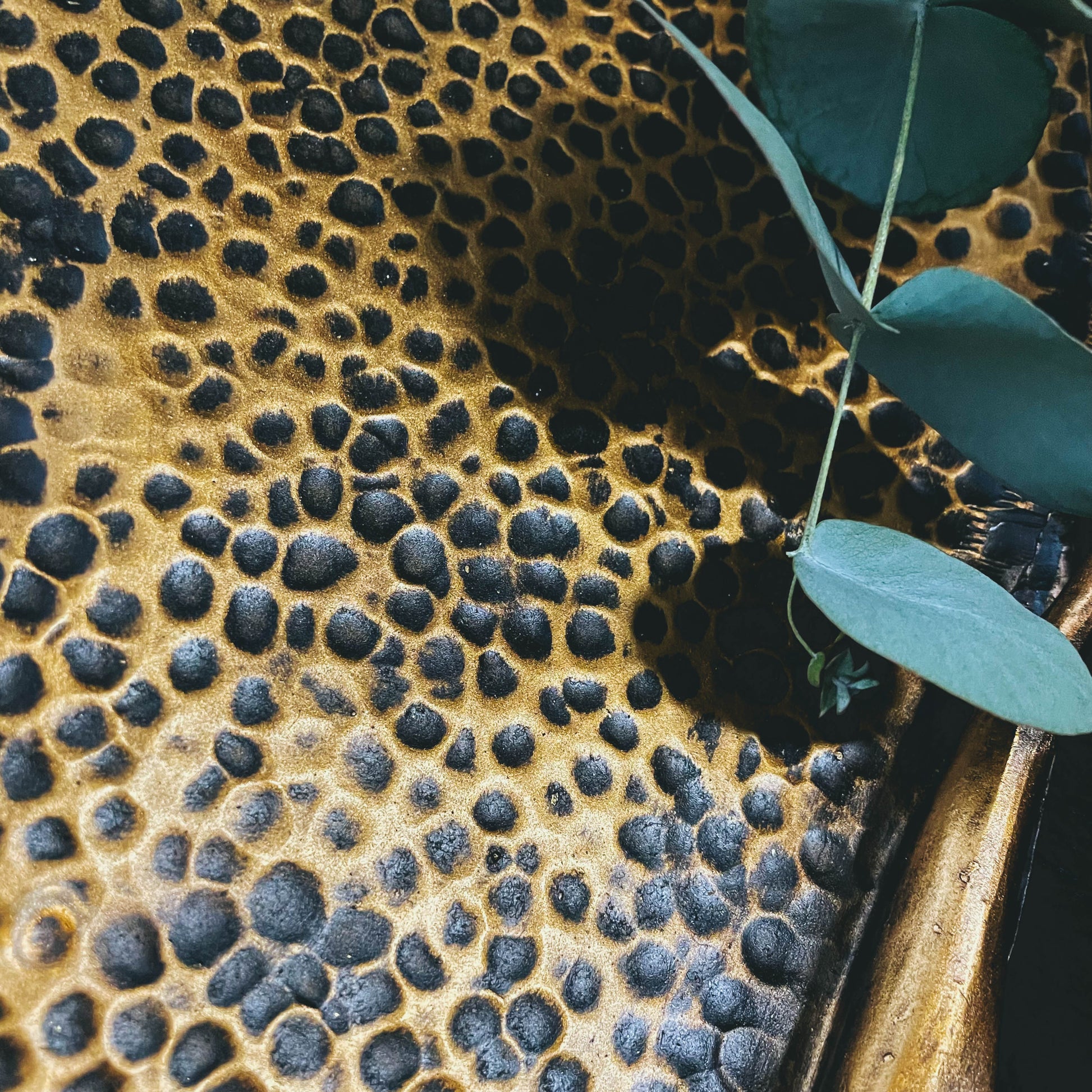 This large bonze tray makes a great center piece for any room. It is 16.5" L x 10" W x 4" H and cast from polyresin.