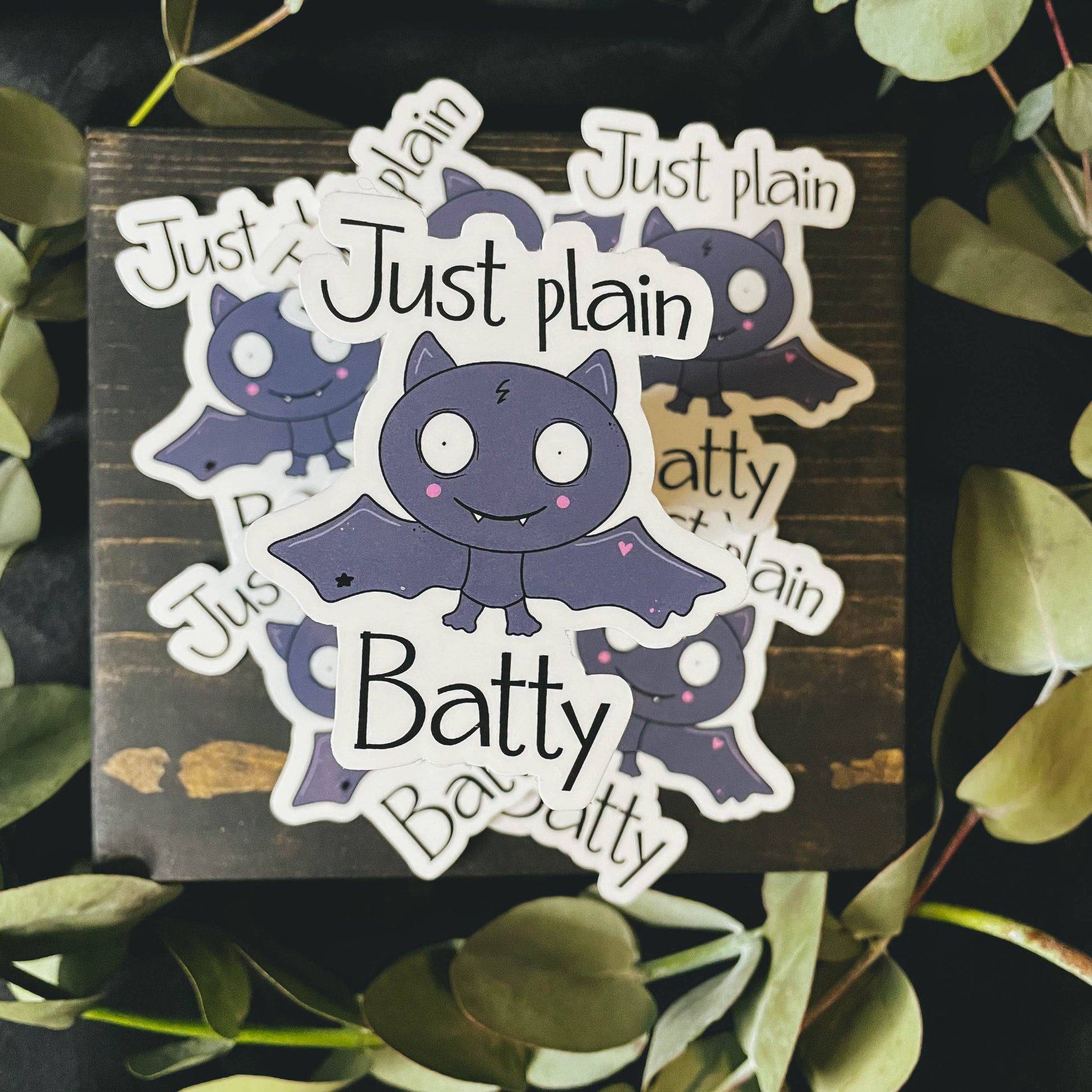 Cute Bat with Just Plain Batty Quote Vinyl Sticker | 3"
