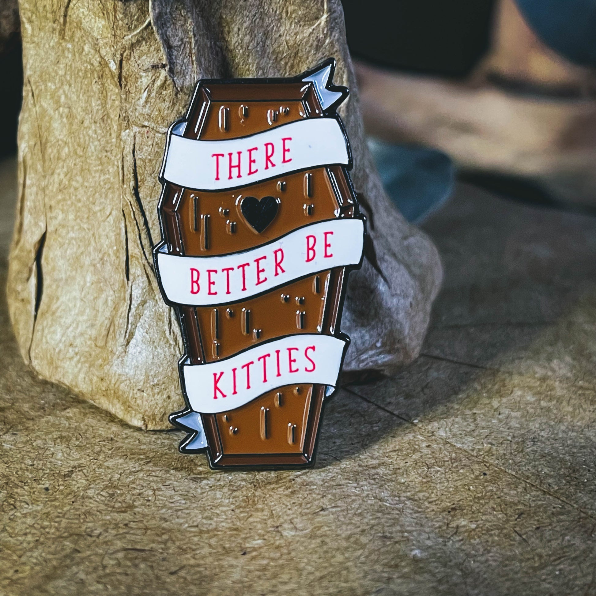 This enamel pin is a ghoulish delight for the pet lover with an attitude! Show off your love of cats with this coffin-shaped pin featuring both antisocial and cat-themed designs! Put this pin on and let the world know you don't just love cats, you love 'em enough to wear them on your sleeve! #Kitties?