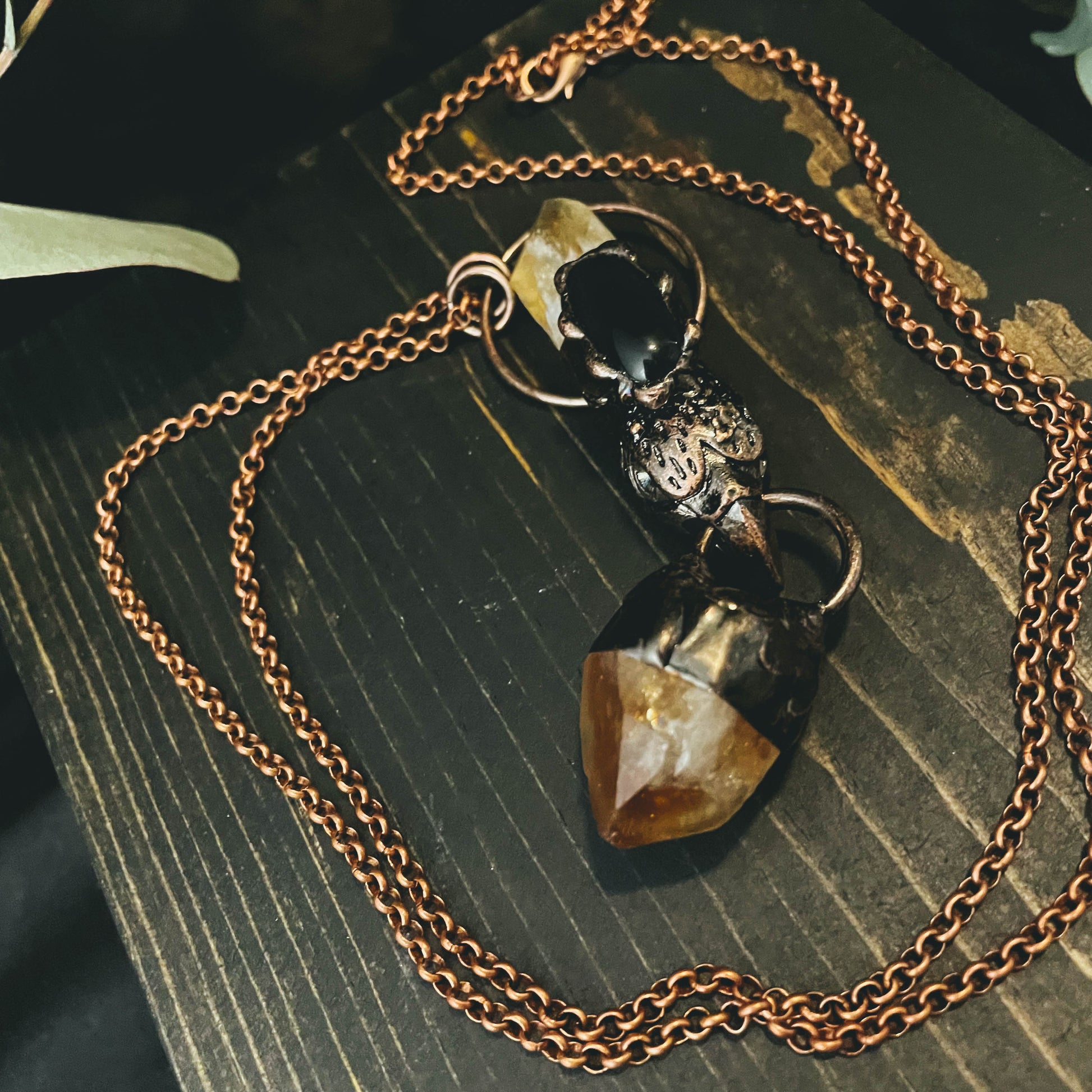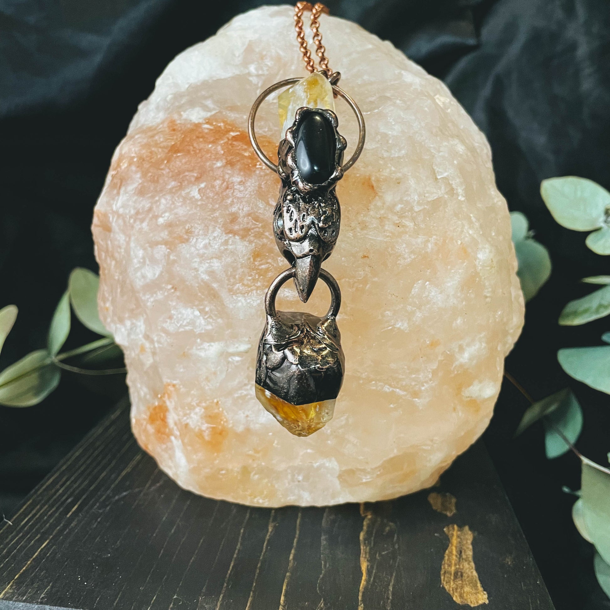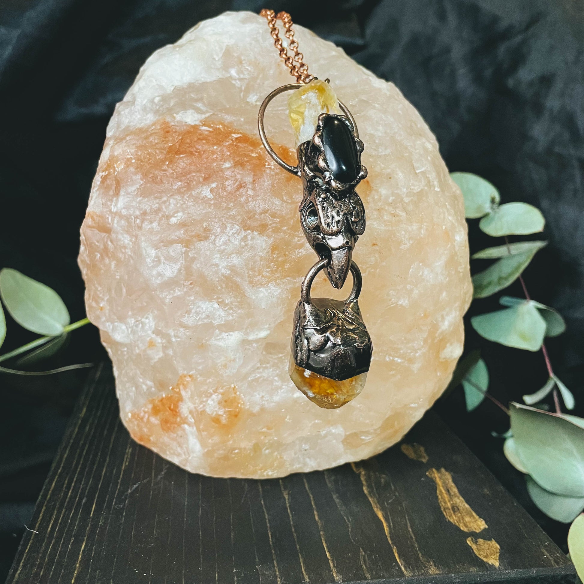 Citrine Obsidian Bird Skull Crystal Necklace