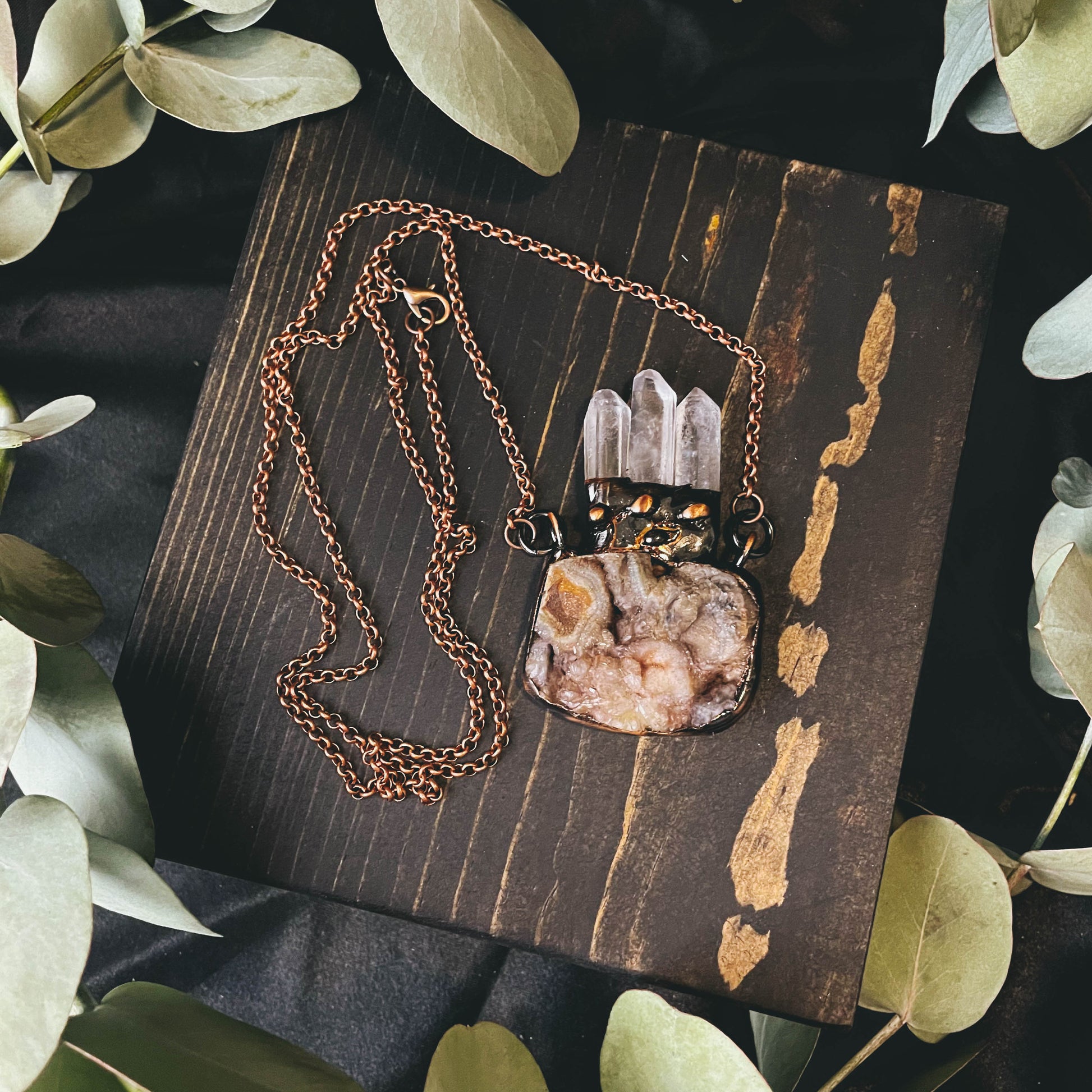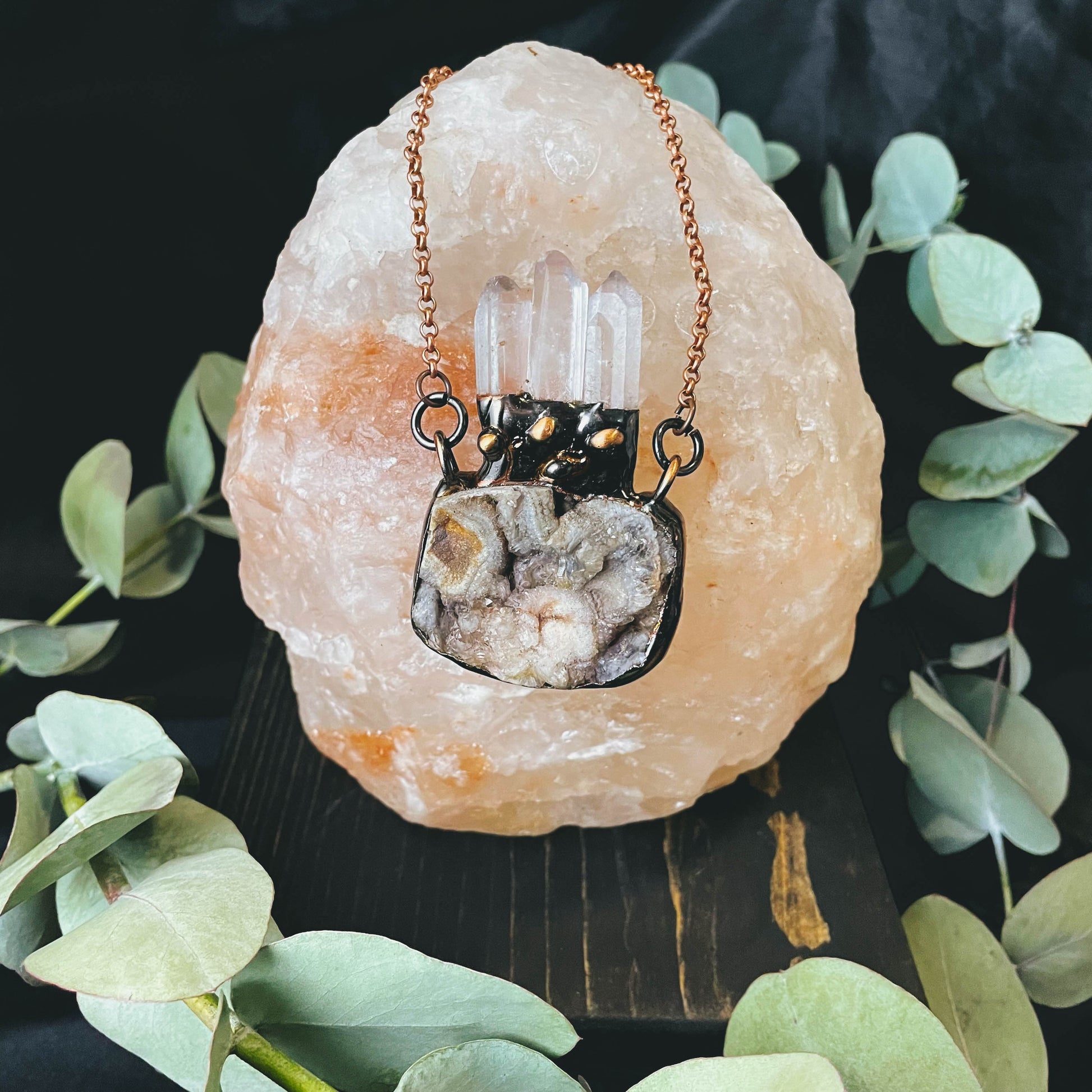 Druzy Agate with Clear Quartz are known to boast loads of beneficial spiritual properties.