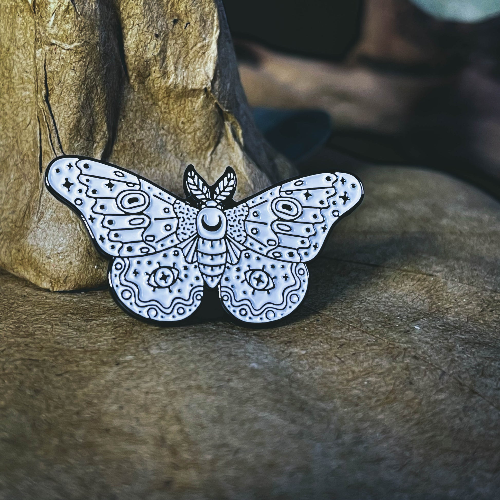 Add a whimsical touch to your look with our charming White Moth Enamel Pin! Featuring a cute cottagecore design of a bold black and white moth, it's perfect for all the bug-lovers out there. Rock it on your favorite bag, shirt, or accessory for a special touch that'll draw all the right attention. (Go ahead and flaunt it, you adorable moth-aphile!)
