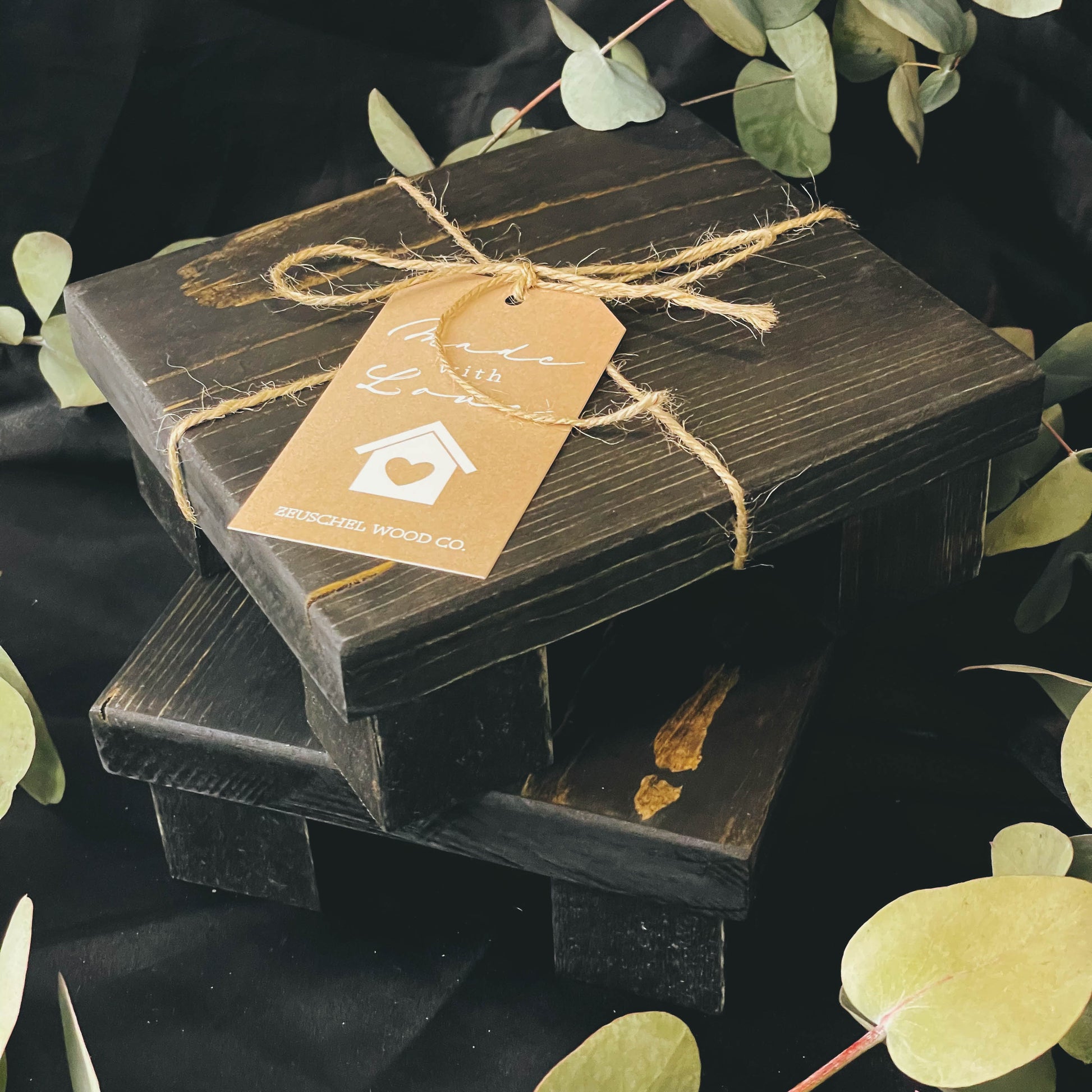 This handmade wooden riser is perfect for displaying soaps, candles, and plants and is a beautiful additional to your decor. This riser is stained in black, is measures 6 x 5.5 and stands 2 inches tall. The riser is made from solid pine wood, stained with an oil based product, with four square blocks that have been nailed to the bottom for a solid base. Please note that this listing is for the wooden riser only.
