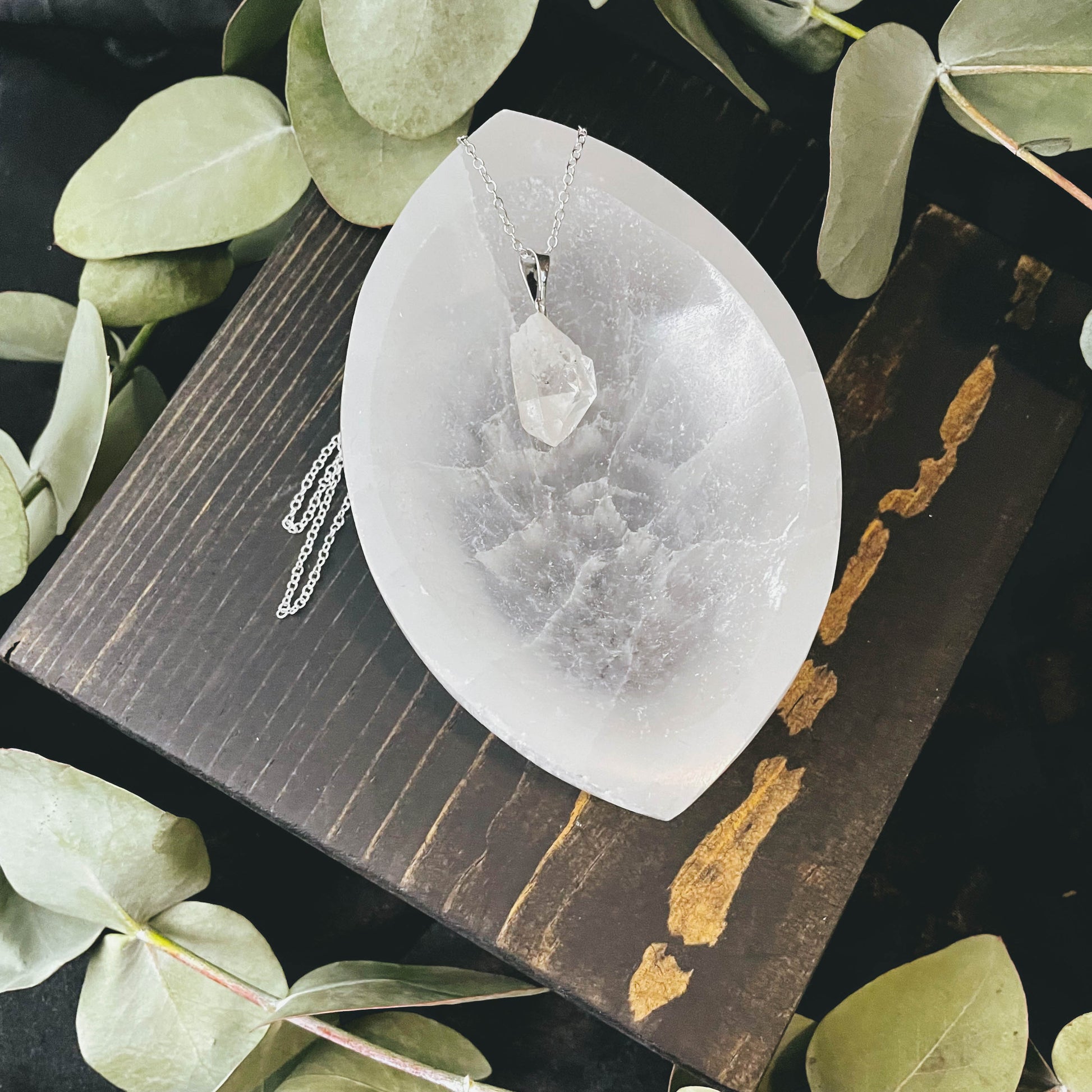 Clarity & power ~ 18" chain Properties of crystal quartz: programmability, amplification of ones intention, magnification of ambient energies Chakras: all Spiritual properties: aids in spirit guide communication, enhances clarity Crystal quartz is called the stone of light and helps to bring clarity and spiritual awareness to those who wear it or meditate with it. its a versatile and multidimensional stone that can be used for almost any metaphysical purpose. Crystal quartz is known for being very powerful. It's so powerful it can be used to charge other crystals.