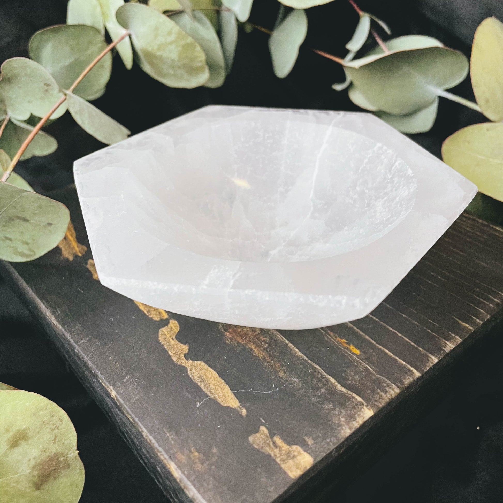 4" Gypsum selenite from Morocco. Selenite is amazing for energy clearing. It's one of the few crystals that doesn't need to be cleansed, it actually cleanses other crystals. These bowls are the perfect addition to any crystal collection & one of our best selling crystals in our shop!